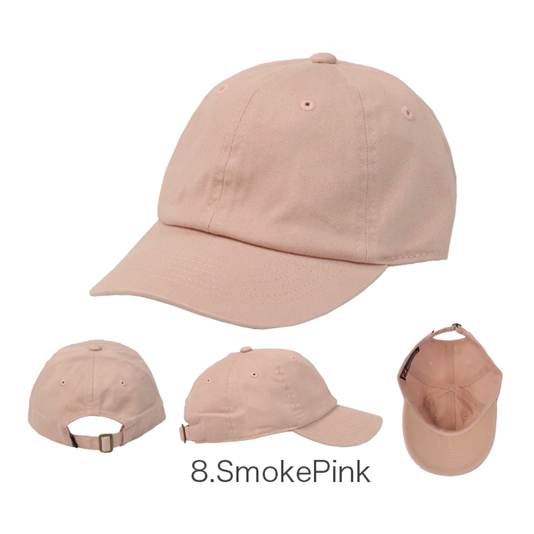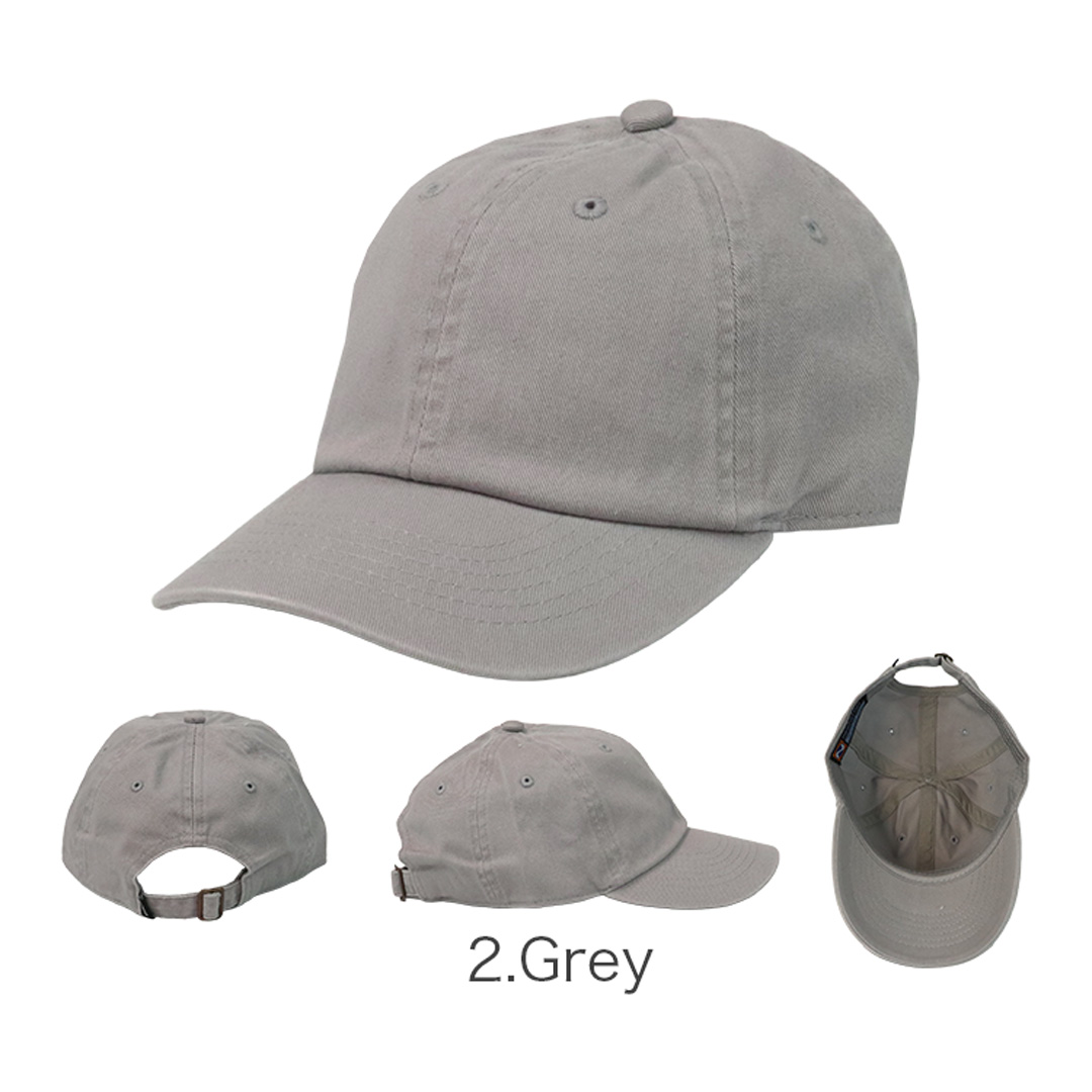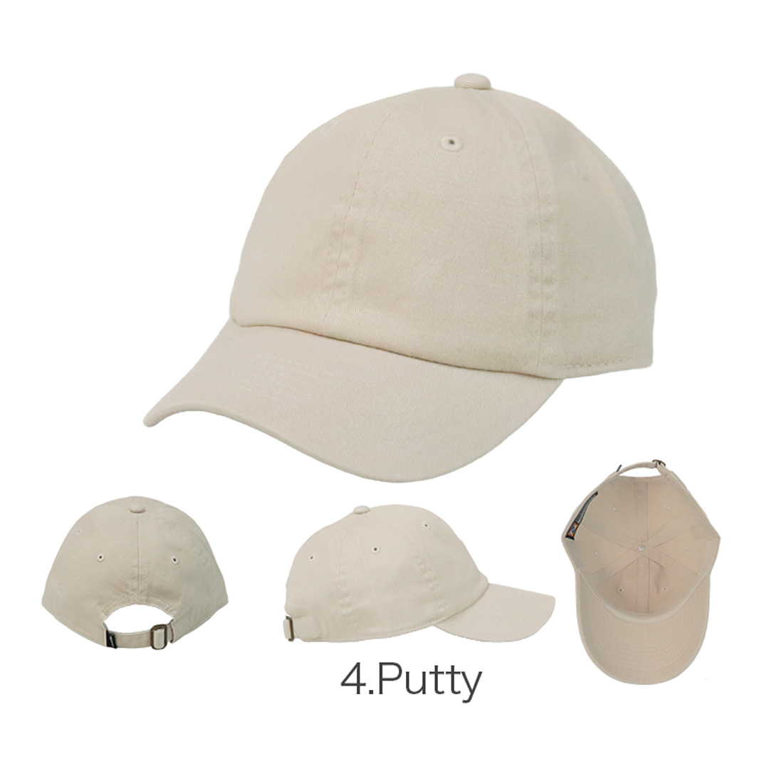 ストーンウォッシュ加工が施されたコットンツイルを使用することで柔らかな質感を実現。ツバはカーブバイザー、フロントパネルは芯のない浅めのローキャップで、アジャスター付きのストラップバック仕様。無地のボディを生かして、刺繍やワッペンでアレンジするのもおすすめです。