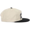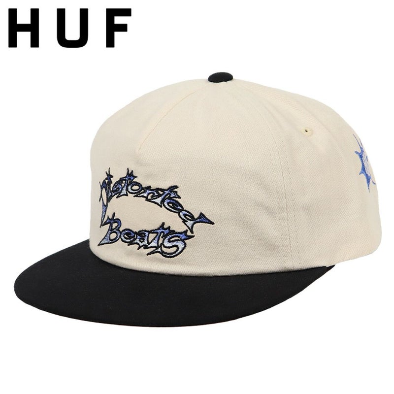 スケーターに人気のブランド HUF/ハフから、5パネルキャップが入荷。イナタい雰囲気のバイカラーボディに、平成レトロを思わせるグラフィティデザインが刺繍されたカッコいいアイテム。芯なしで内側に前立てメッシュを採用したフロントパネル、ツバは真っすぐなフラットバイザー(平ツバ)、後部のスナップバックでサイズ調整ができるのでユニセックスで着用いただけます。ストリート/カジュアル系のファッションに合わせやすく、スケーター/ダンサー/ラッパー系のスタイルにオススメ。
