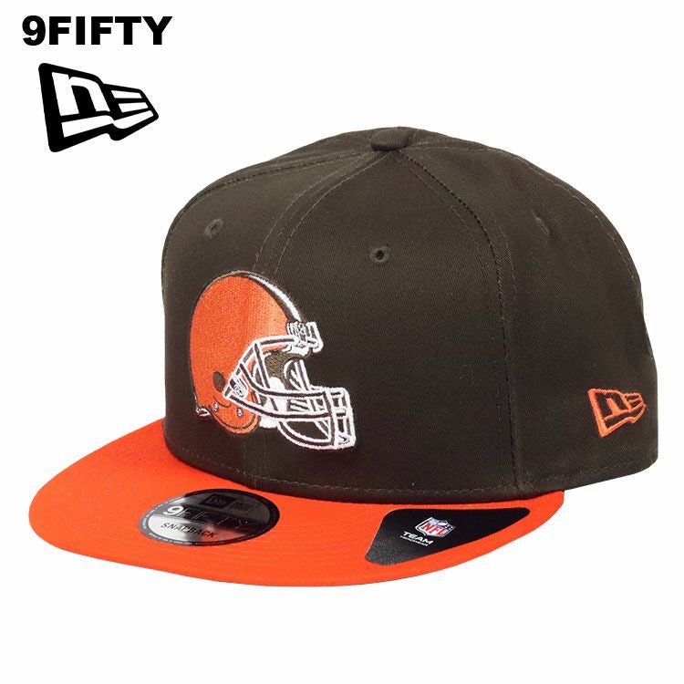 NewEra/ニューエラの9FIFTYシリーズから、アメリカンフットボール最上位リーグNFLのチーム Cleveland Browns/クリーブランド・ブラウンズの6パネルBBキャップが入荷。リーグで唯一チームロゴを持たないため、試合で着用するヘルメットをメインデザインとしてフロントに刺繍。チームカラーを前面に押し出したツートンカラーのボディが映える、インパクトあるカッコいいアイテムです。芯ありのしっかりとしたフロントパネルに、ツバは真っすぐなフラットバイザー。後ろについたスナップバックでサイズ調整が可能なのでメンズ・レディース問わず男女兼用で着用いただけます。