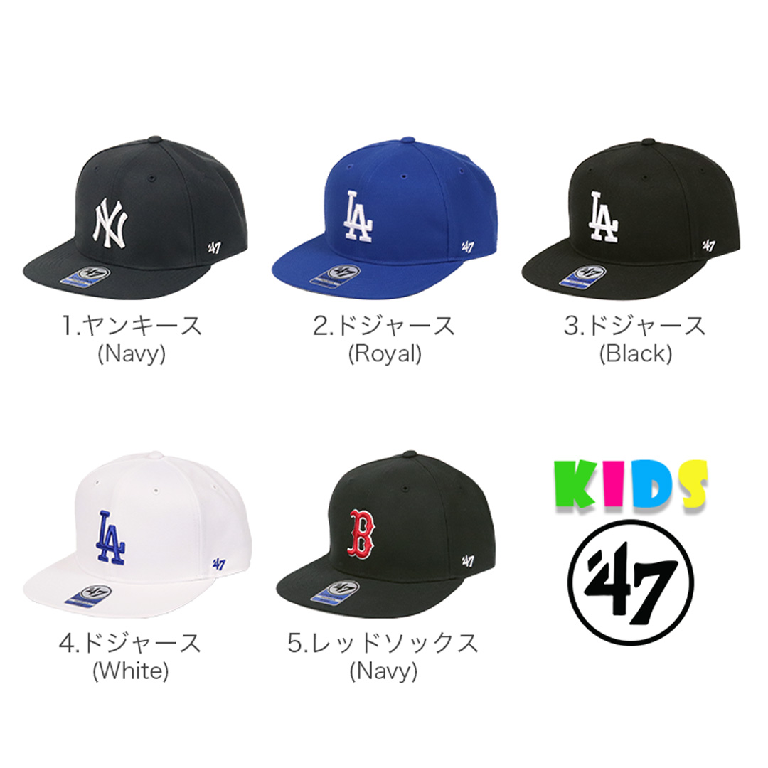47のリルショット・キャプテンシリーズから、キッズサイズの6パネルベースボールキャップが入荷。フロントパネルにはMLB/メジャーリーグ人気球団NEW YORK YANKEES/ニューヨーク・ヤンキース、LOS ANGELES DODGERS/ロサンゼルス・ドジャース、BOSTON RED SOX/ボストン・レッドソックスのチームロゴを刺繍した王道のデザイン。大人用のCAPTAINをシルエットはそのまま子供用にリサイズした、幅広いファッション・コーデに合わせやすい定番ヘッドウェア。ツバは真っすぐなフラットバイザー(平ツバ)、芯ありのしっかりとしたフロントパネル、後部のスナップバックでサイズ調整が可能なのでプレゼントにもオススメです。