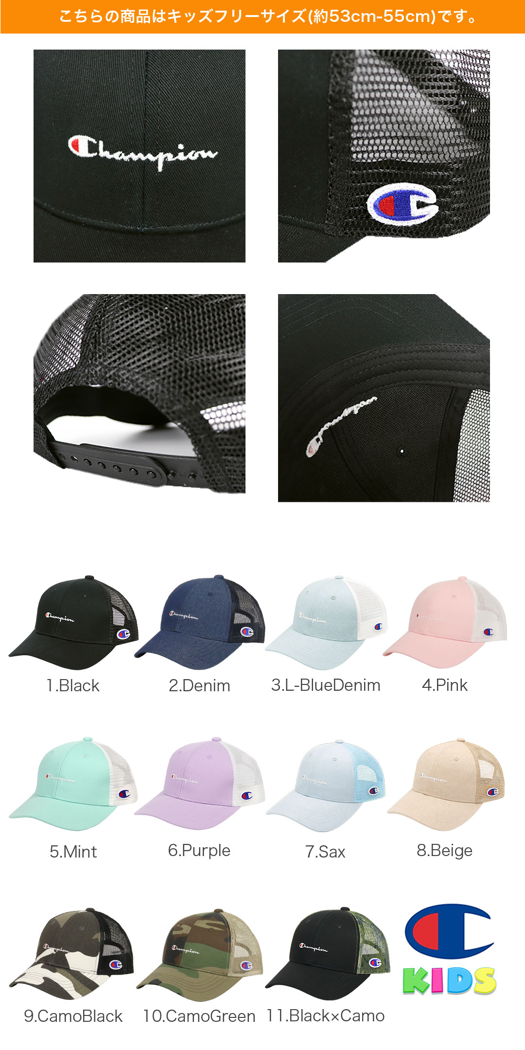 Champion/チャンピオンより、カラフルなラインナップが揃ったキッズ用6パネルメッシュキャップが入荷しました。コットンツイル生地とメッシュ素材を組み合せることで、通気性が高く蒸れにくいため、暑い時期でも快適な被り心地を実現。スポーツや公園遊び、遠足や学校行事、ピクニックなど外遊びやアウトドアシーンでの紫外線・熱中症対策としても活躍します。