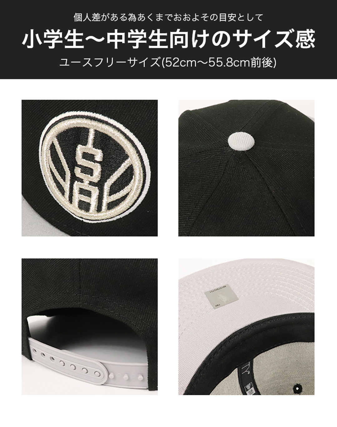 NewEra/ニューエラの9FIFTYから、ユースサイズの6パネルキャップが入荷。NBA人気チームSAN ANTONIO SPURS/サンアントニオ・スパーズのクラシックなチームロゴがフロントに刺繍された、幅広いファッション・コーデに合わせやすい王道ヘッドウェア。ツバはフラットバイザー仕様、芯ありのしっかりとしたフロントパネル、後部のスナップバックでサイズ調整が可能なので、プレゼントにもオススメです。