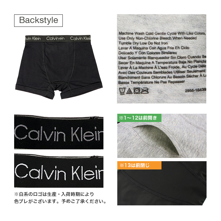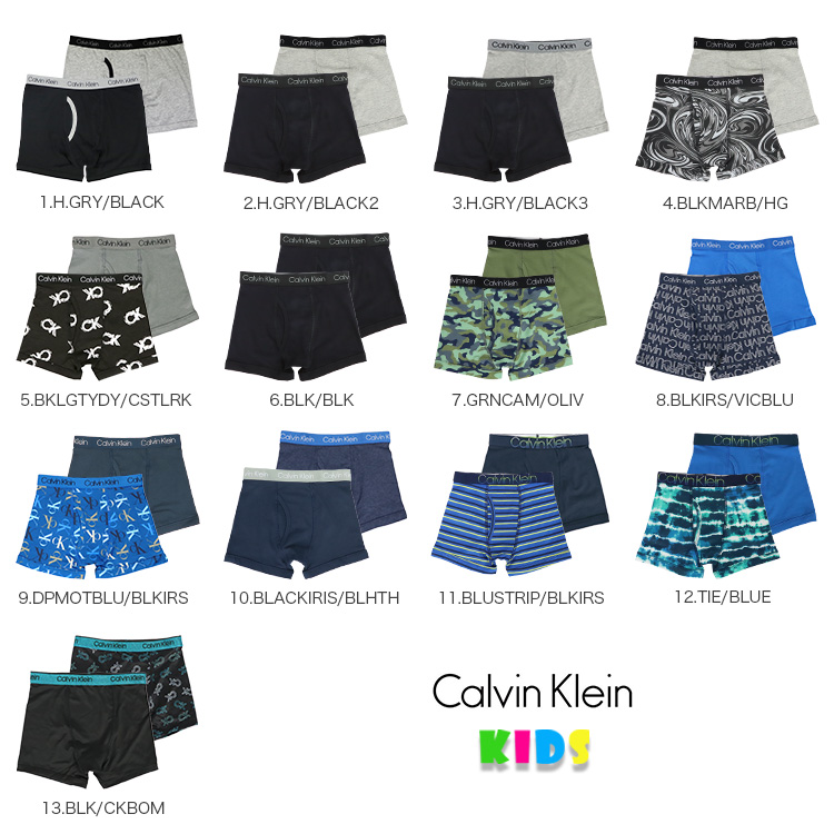 CalvinKlein/カルバンクラインから、キッズ用のアンダーウェアが入荷。伸縮性のあるウエストのゴム部分には「CalvinKlein」の文字が入っております。それぞれがロゴや柄と無地のお得な2枚組セットなのでプレゼントにもおすすめの一点です☆
