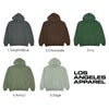 Los Angeles Apparel/ロサンゼルスアパレルから、プルオーバーパーカーが入荷。ガーメントダイ(製品染め)による自然な色ムラが独特の風合いを醸し出しており、洗っても縮みにくく型崩れしないシュリンクフリーなので、傷みを気にせず長く着用できる丈夫でオシャレなアイテムです。ヘビーフリースの生地は重さ14オンスと非常に肉厚で、肌寒い秋冬でも活躍間違いなし!シンプルな無地で幅広いスタイル・コーデに合わせやすく、春秋のアウターとしても、ブルゾンやコートのインナーとしてもOK、ボトムスは細くても太くてもラフに着こなすことができるオススメの一点。