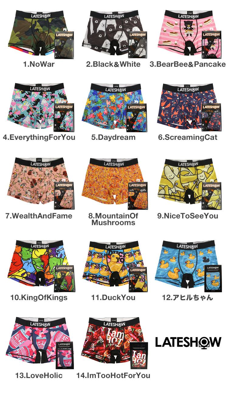 他の画像を見る レイトショー ボクサーパンツ メンズ LATESHOW アンダーウェア 下着 ブランド ロゴ ボクサーブリーフ 総柄 柄物 男性 紳士 プレゼント ギフト パック おしゃれ 通販 人気 ブランド メール便送料無料 99HeadwearShop価格 ¥ 2,090 税込 カートに入れる お気に入りに登録する