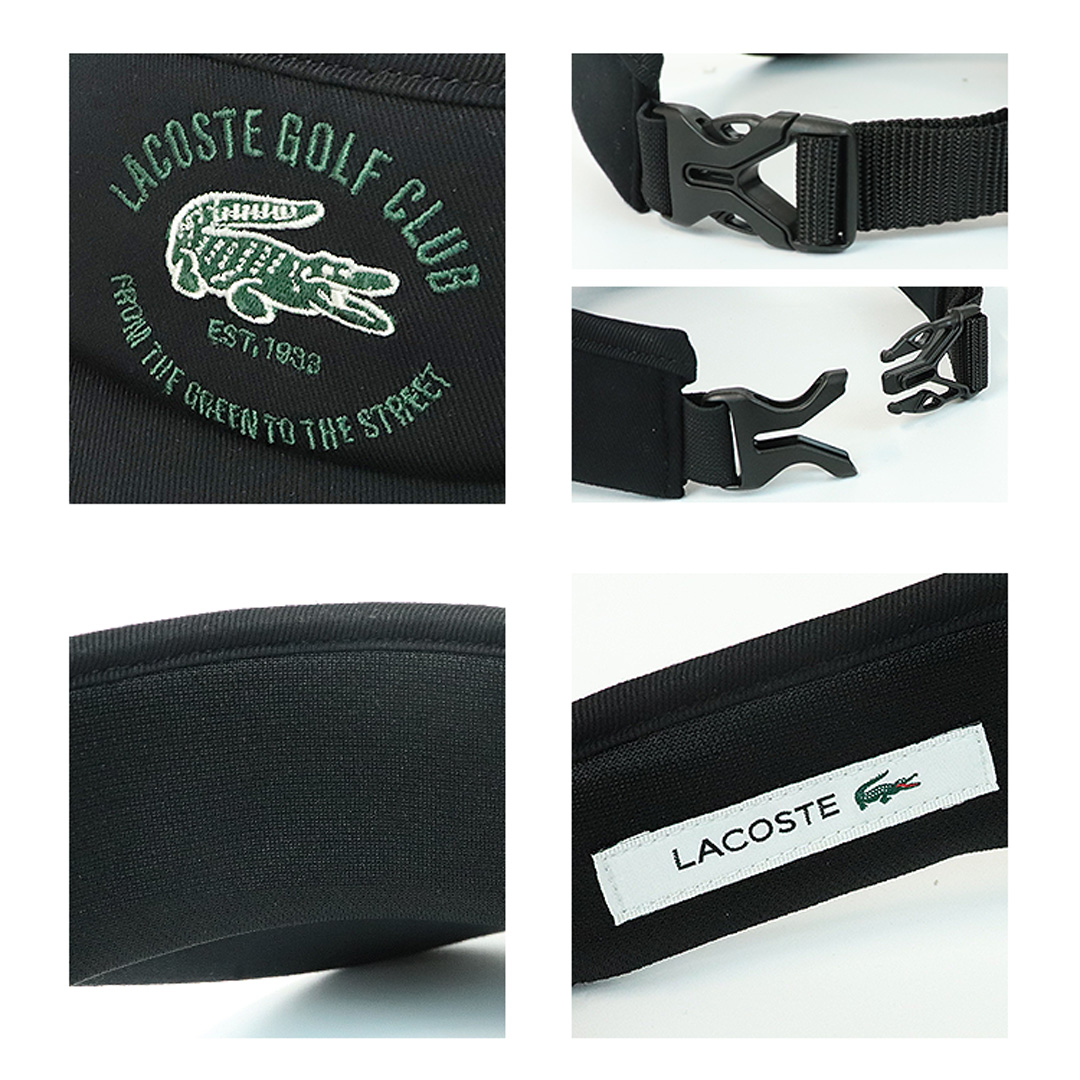 LACOSTE/ラコステから、サンバイザーが入荷。象徴的な「ワニ」マークと「GOLF CLUB」のサークルロゴがフロントにセットされたクラシックなデザイン。シンプルな色使いと高級感溢れる素材感が上品な印象で、着脱しやすいバックルアジャスター仕様で機能面も◎