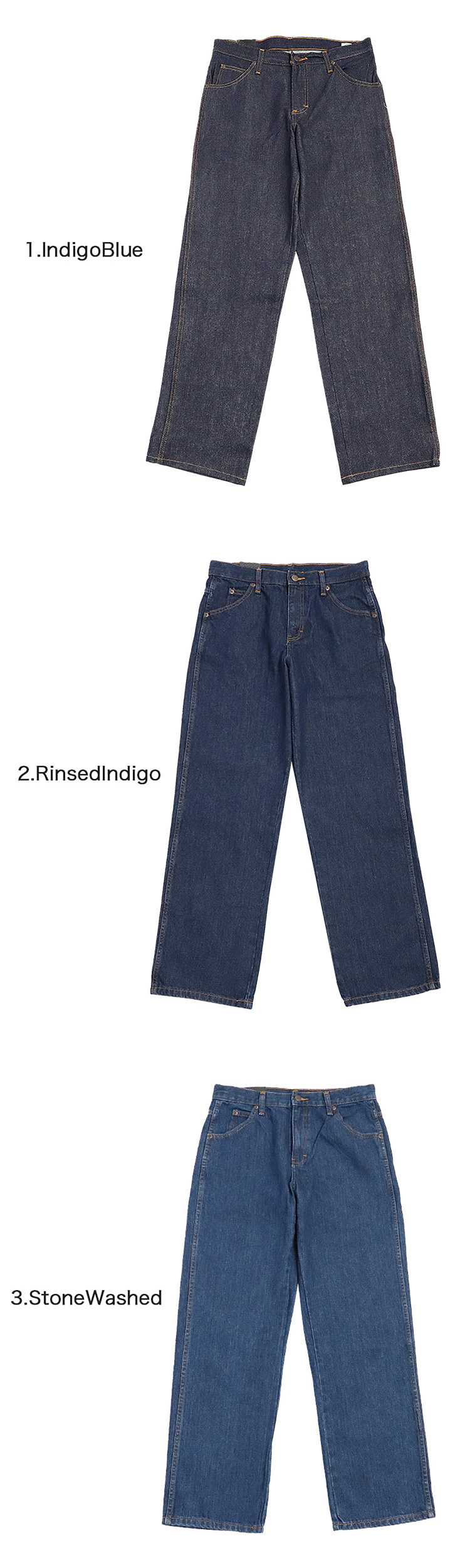 2.RinsedIndigo、3.StoneWashed