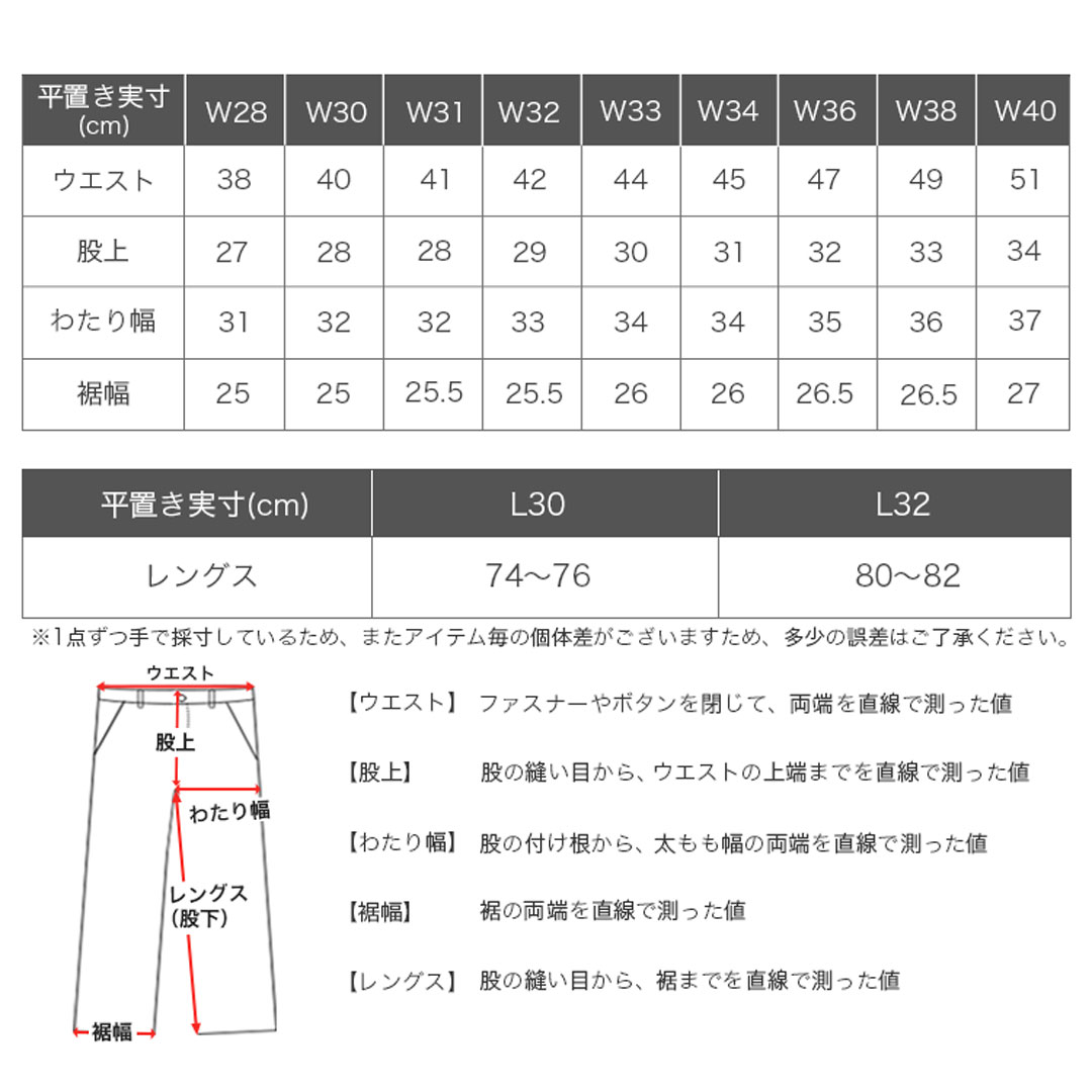 平置き実寸(cm)[ウエスト/股上/わたり幅/裾幅]