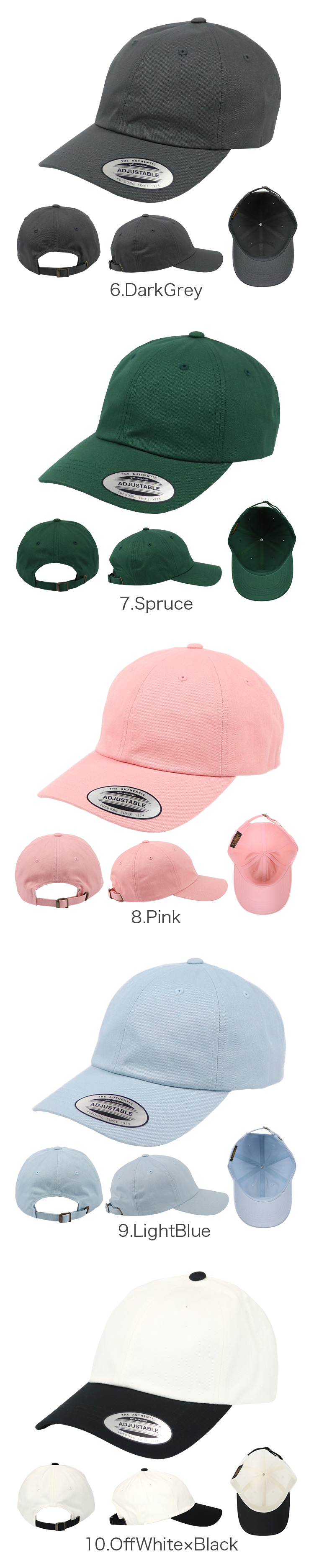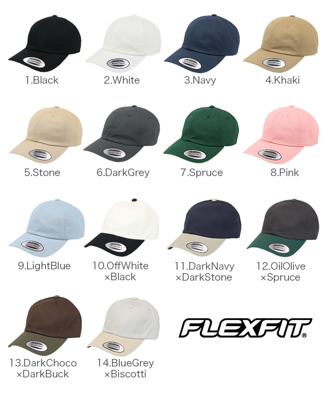 FLEXFIT/フレックスフィットから、6パネルのローキャップが入荷。ワンカラー、2トーンカラーなど豊富なカラーバリエーションを揃えました。浅めのダッドキャップで芯のないラフなフロントパネル、ツバはあらかじめカーブされたカーブバイザー仕様。ストラップバックでサイズ調整が可能なので、男女兼用ユニセックスで着用していただけます。