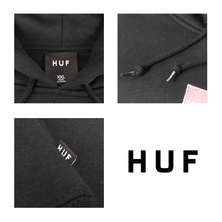 HUF(ハフ)はプロスケーターのKeith Hufnagel(キース・ハフナゲル)がスタートさせたスケートブランド。New York(ニューヨーク)のストリートでスケボーをして育ち、San Francisco(サンフランシスコ)の美大に通う学生生活中にREAL SKATEBOARDSにスポンサードされてプロになり、彼の持つスケートスタイルや人間性により人気スケーターとなった。その後、NYCでスケートしていたころにストリートから得た様々なものをデザインしたストリートアパレルブランドHUF(ハフ)をスタートさせる。たくさんの有名ブランドやアーティスト・キャラクターなどとのコラボアイテムを発表し話題に。単なるスケートブランドではなく80~90年代頃のスケートシーンと関わりの深いカウンターカルチャー(反体制文化)精神を持つ様々な人から支持されている人気ストリートブランド。do it yourself do it in style.