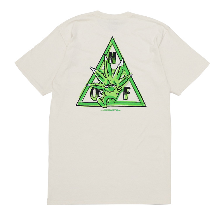 ストリートファッションの人気ブランドのHUF/ハフから、半袖Tシャツが入荷。、手描きタッチのトリプルトライアングルロゴとHUFのオリジナルキャラクター "Green Buddy (グリーン・バディ)” を組み合わせたプリントがフロントとバックに施されています♪男性はもちろん女性がダボっと着てもかわいいので、メンズ・レディース問わずユニセックスでご着用頂けます。トレンドのビッグシルエット/オーバーサイズで着こなすのがおススメ。