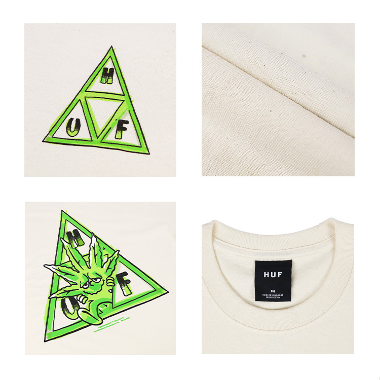 HUF(ハフ)はプロスケーターのKeith Hufnagel(キース・ハフナゲル)がスタートさせたスケートブランド。New York(ニューヨーク)のストリートでスケボーをして育ち、San Francisco(サンフランシスコ)の美大に通う学生生活中にREAL SKATEBOARDSにスポンサードされてプロになり、彼の持つスケートスタイルや人間性により人気スケーターとなった。その後、NYCでスケートしていたころにストリートから得た様々なものをデザインしたストリートアパレルブランドHUF(ハフ)をスタートさせる。たくさんの有名ブランドやアーティスト・キャラクターなどとのコラボアイテムを発表し話題に。単なるスケートブランドではなく80~90年代頃のスケートシーンと関わりの深いカウンターカルチャー(反体制文化)精神を持つ様々な人から支持されている人気ストリートブランド。do it yourself do it in style.