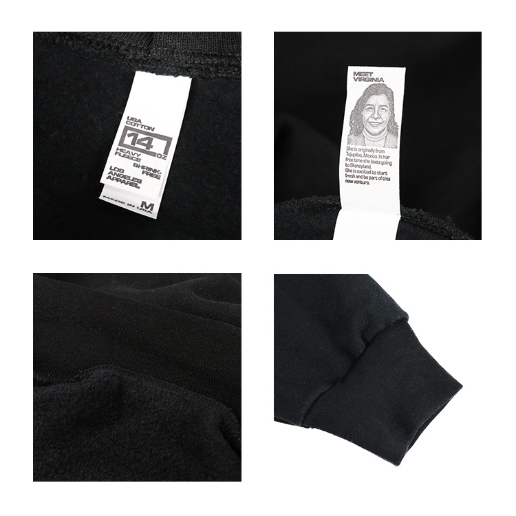 Los Angeles Apparel(ロサンゼルスアパレル)は、かつて一世を風靡した“アメアパ”こと「アメリカンアパレル」の創業者ダブ・チャウニー氏が2016年に設立したブランド。シンプルなデザインながらMADE IN USAにこだわった上質なアイテムを展開している今注目のブランドです。ロスアパ製品のタグ裏は、縫製者の顔写真とプロフィールがプリントされたユニークなデザイン、タグ裏を見るのも面白さのひとつです。