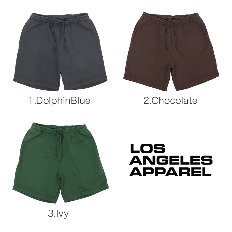 Los Angeles Apparel/ロサンゼルスアパレルから、ハーフパンツが入荷。ガーメントダイ(製品染め)による自然な色ムラが独特の風合いを醸し出しており、洗っても縮みにくく型崩れしないシュリンクフリーなので、傷みを気にせず長く着用できる丈夫でオシャレなアイテムです。ヘビーフリースの生地は重さ14オンスと非常に肉厚。幅広いファッションスタイルに合わせやすい無地デザイン、3ポケット、ウエストはゴム+紐。100% Made in U.S.A.、ブランド名の通りロサンゼルスで製造された商品です。