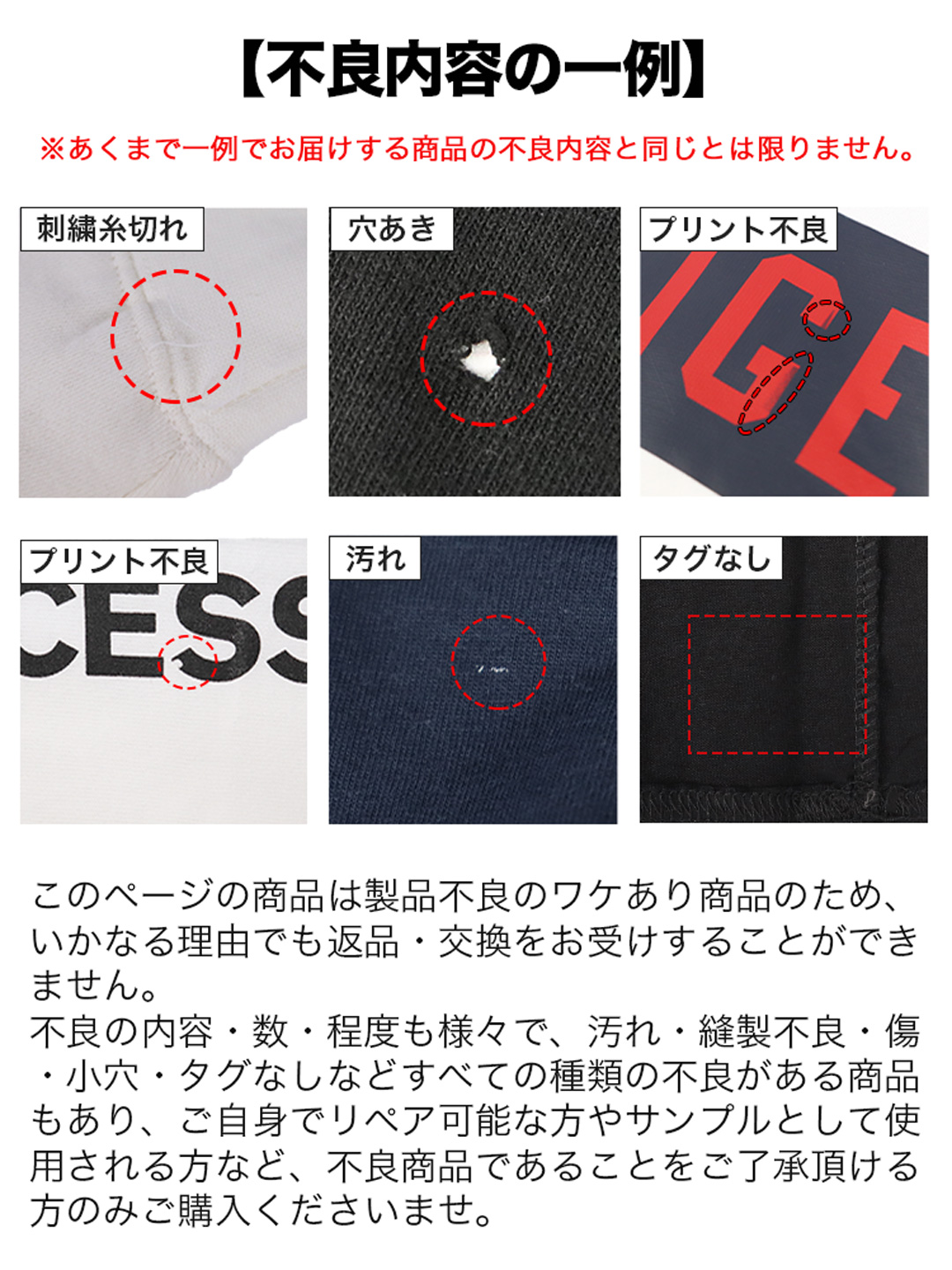 不良の内容・数・程度も様々で、汚れ・縫製不良・傷・タグ欠損などすべての種類の不良がある商品もあり、ご自身でリペア可能な方やサンプルとして使用される方など、不良商品であることをご了承頂ける方のみご購入くださいませ。