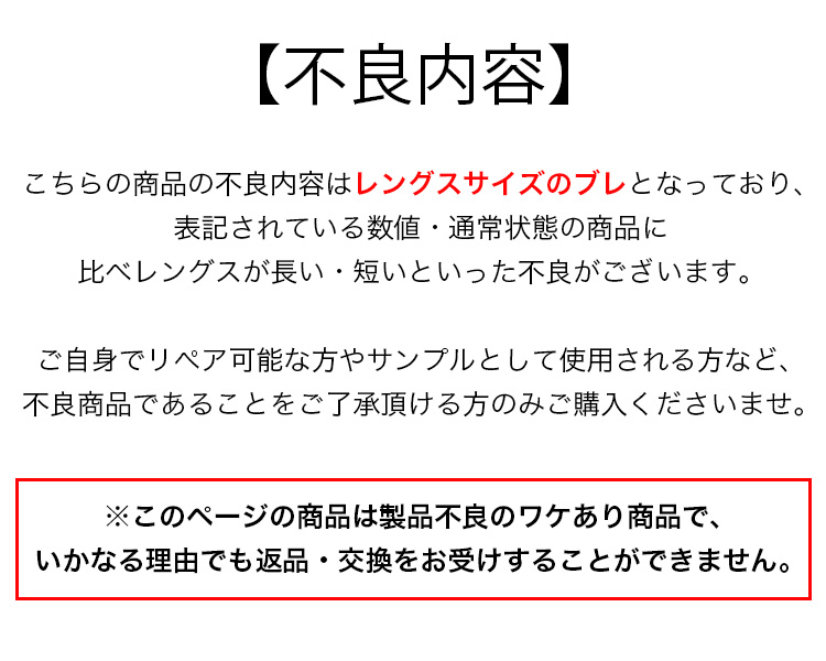 商品の品質につきましては、万全を期しておりますが、万一不良・破損などがございましたら、商品到着後7日以内にお知らせください。返品・交換につきましては、x初期不良(未使用)または、弊社事由による誤送(ご注文と違う商品が届いた)の場合、お電話またはメールにてご連絡を頂き、弊社にご返送して頂いた商品を確認後に対応させて頂きます。