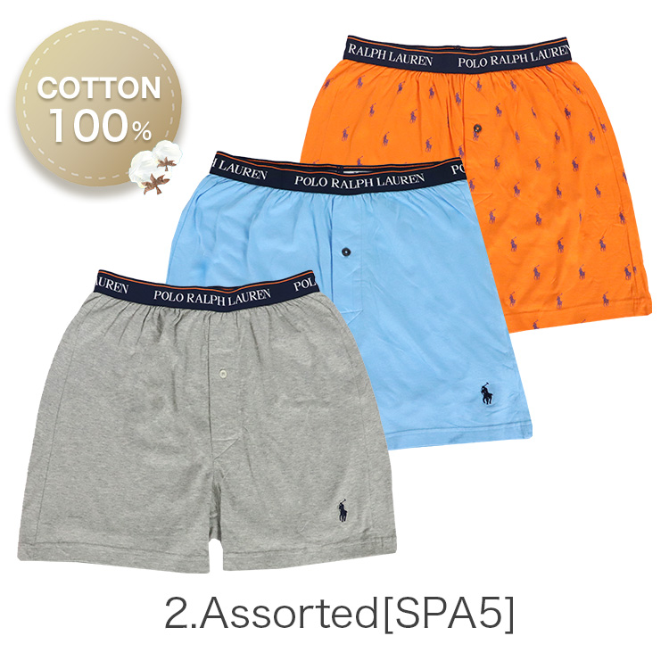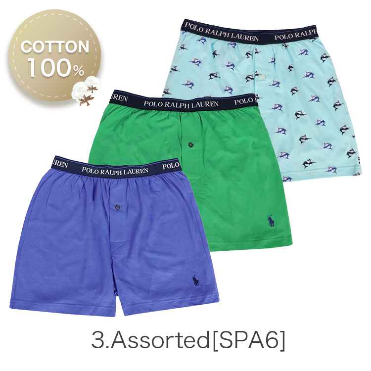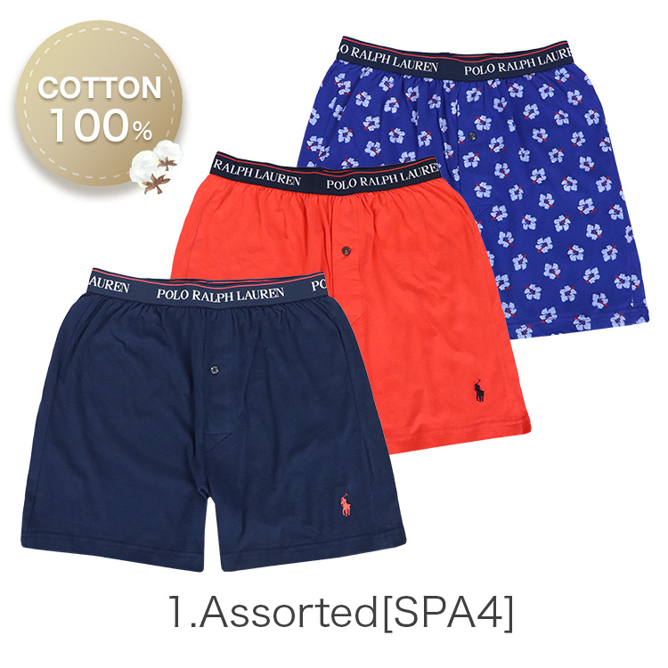 人気ブランドのPolo Ralph Lauren/ポロラルフローレンから、綿100%で柔らかくサラッとした履き心地のトランクスが入荷。ウエストゴム部分にブランドロゴが配置された、シンプルでかっこいいデザイン。定番の無地はもちろん、季節感のある柄物も入ったセットなので、気分に合わせて履きまわせるお得な3枚パック。ボタン付きの前開きタイプ。ボックスで届くのでプレゼントにもオススメ◎