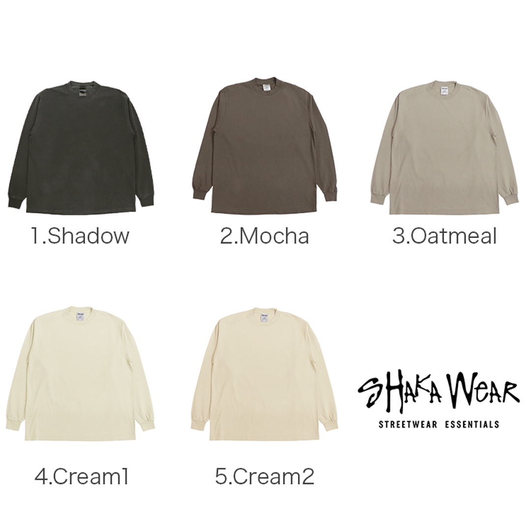 SHAKAWEAR/シャカウェアから、ロングスリーブTシャツが入荷。無地で後染めされたデザインは独特の風合いが出る渋みのある7.5オンスの厚みボディです。これ一枚でもインナーとしてもOKで、何枚あっても使いやすいアイテムです。大きめにビッグシルエットで着こなすのがトレンド♪