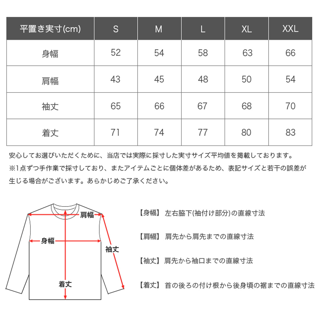 平置き実寸(cm)[身幅/肩幅/袖丈/着丈]:Sサイズ 52/43/65/71