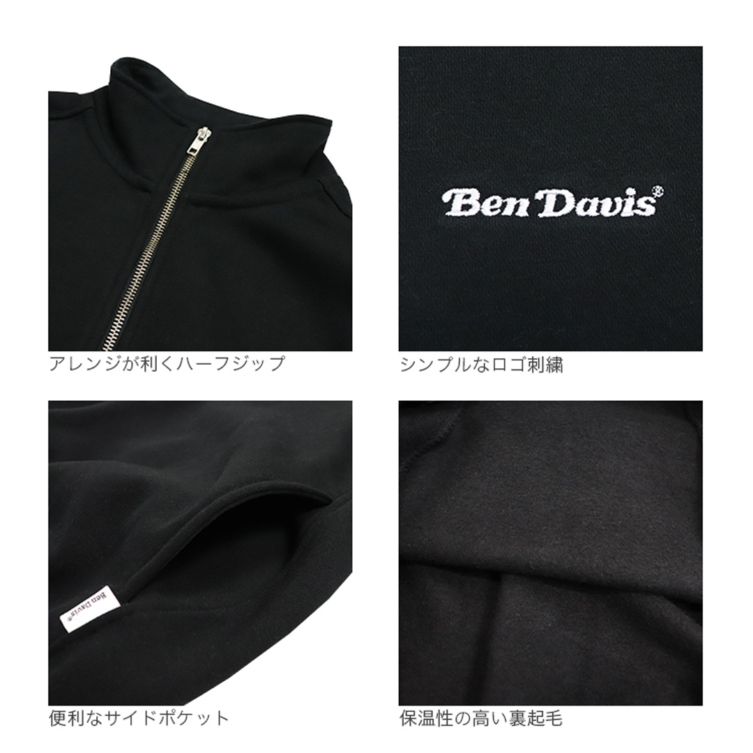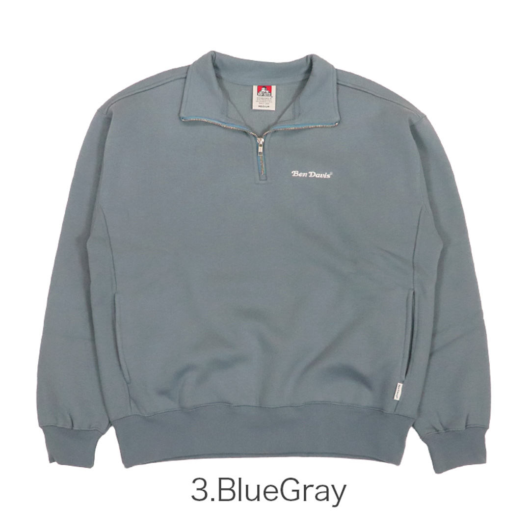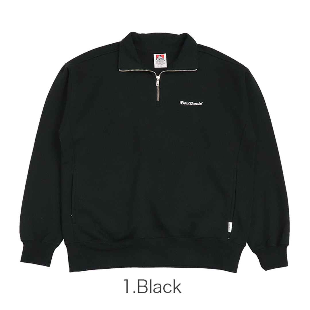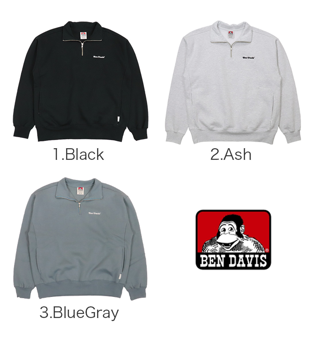 BEN DAVIS/ベン・デービスから、裏起毛ハーフジップスウェットトップスが入荷。90年代リバイバルブームにより定番化したアイテムで、トレーナーの持つベーシックなシルエットは保ちながらもトラックジャケットのような襟が特徴。襟部分はハイネック/レギュラー/オープンなど自分好みにアレンジを楽しめます。同シリーズ「WIDE CURVE SWEAT PANTS (#C-25780050)」とセットアップ対応。