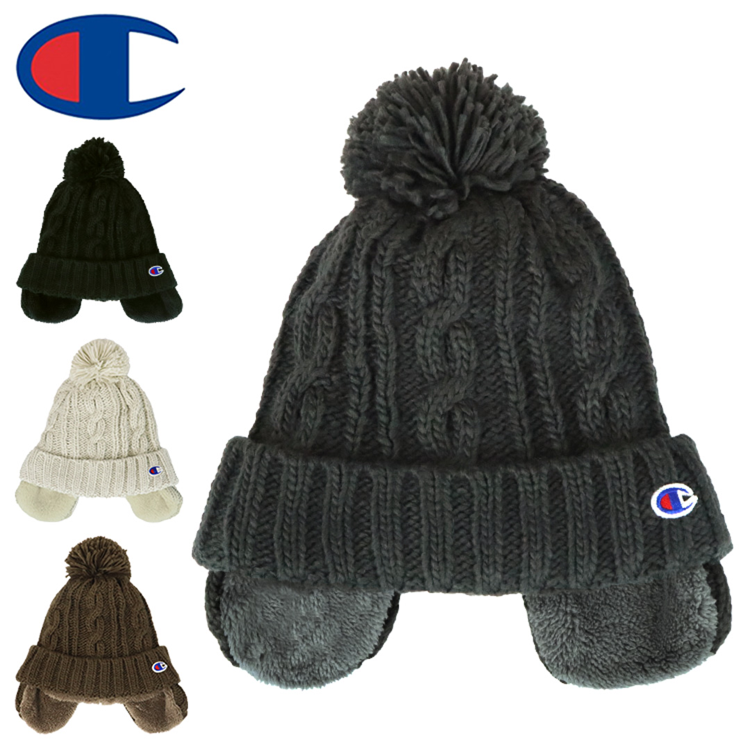 【冬物セール開催中】 チャンピオン ニット帽 耳付き ニットキャップ Champion メンズ レディース 裏ボア ポンポン ビーニー 帽子 男女兼用 あったか 防寒 ポンポン帽 スノボ アニマル 通販 人気 ブランド