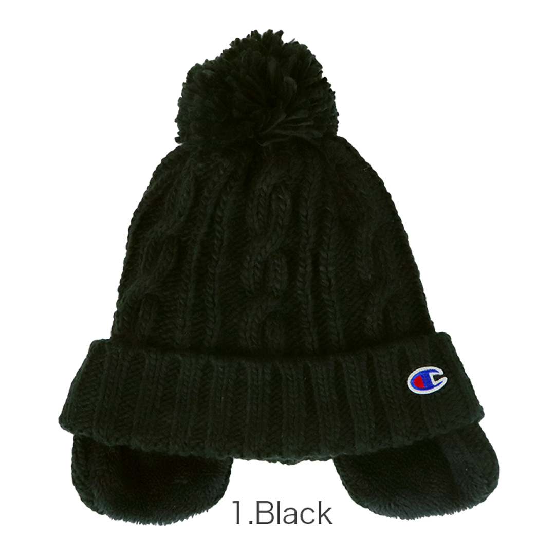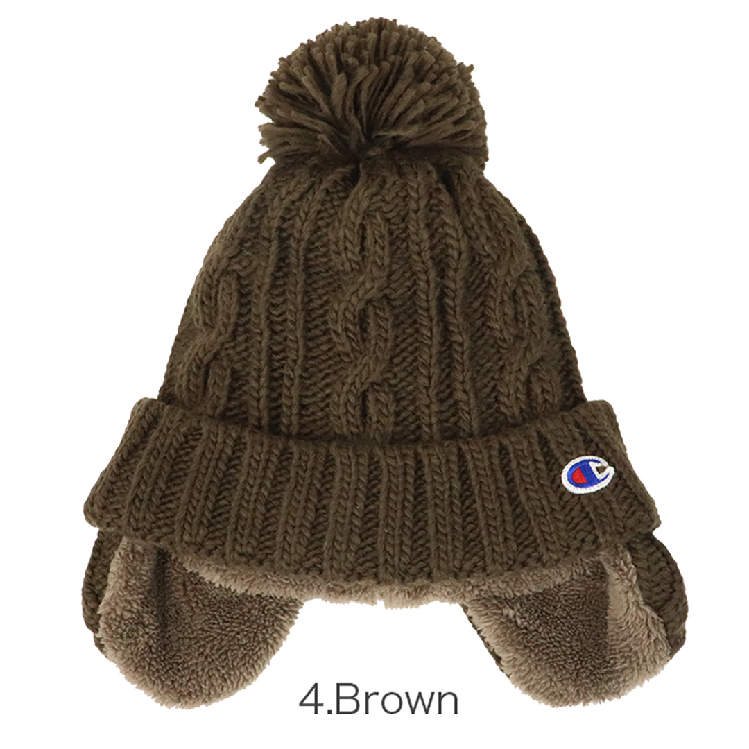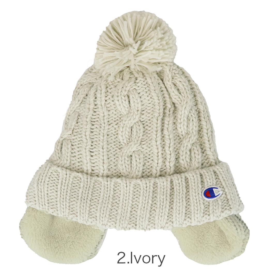 4. 【冬物セール開催中】 チャンピオン ニット帽 耳付き ニットキャップ Champion メンズ レディース 裏ボア ポンポン ビーニー 帽子 男女兼用 あったか 防寒 ポンポン帽 スノボ アニマル 通販 人気 ブランド