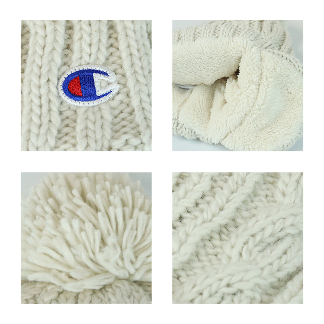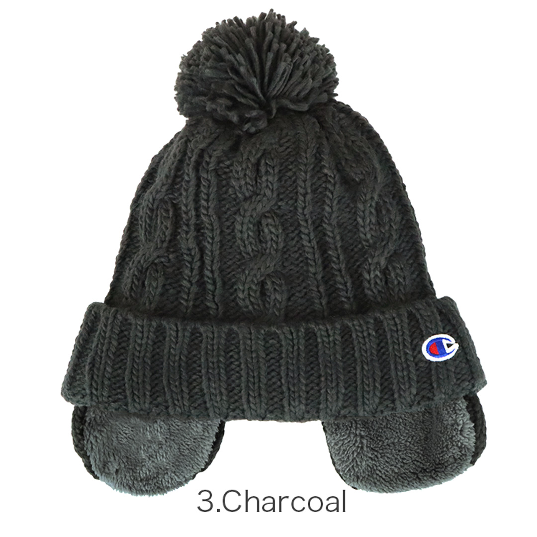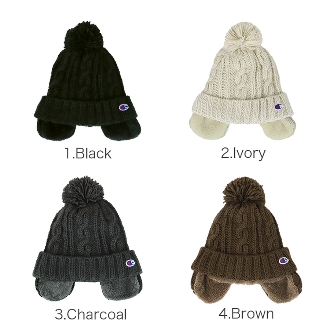 4. 【冬物セール開催中】 チャンピオン ニット帽 耳付き ニットキャップ Champion メンズ レディース 裏ボア ポンポン ビーニー 帽子 男女兼用 あったか 防寒 ポンポン帽 スノボ アニマル 通販 人気 ブランド