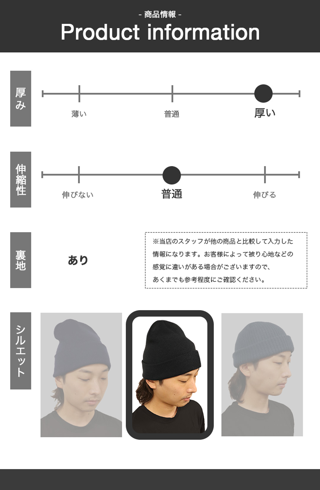 ※ニット製品の特性上、サイズや形状に若干の個体差が生じる場合がございますが、伸縮性に優れているため、着用には支障ございません。あらかじめご了承ください。