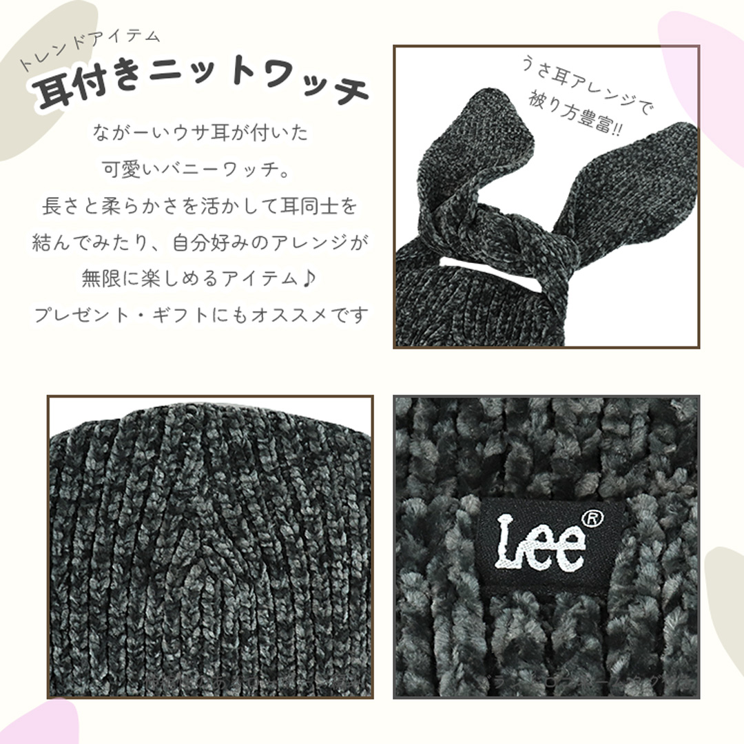 Lee/リーから、ながいウサ耳のシルエットが可愛いバニーワッチが入荷。耳部分はそのまま垂らすのはもちろん、長さと柔らかさを活かして結んだり、片方だけくくったり、先を安全ピンで留めたりと、アレンジは自由自在。自分好みのスタイルを楽しめる、遊び心たっぷりのアイテムです。本体の折り返し部分にあしらわれた、ブランドビスネームがさりげないアクセントになった、キュート×シンプルのバランスが絶妙なデザイン。