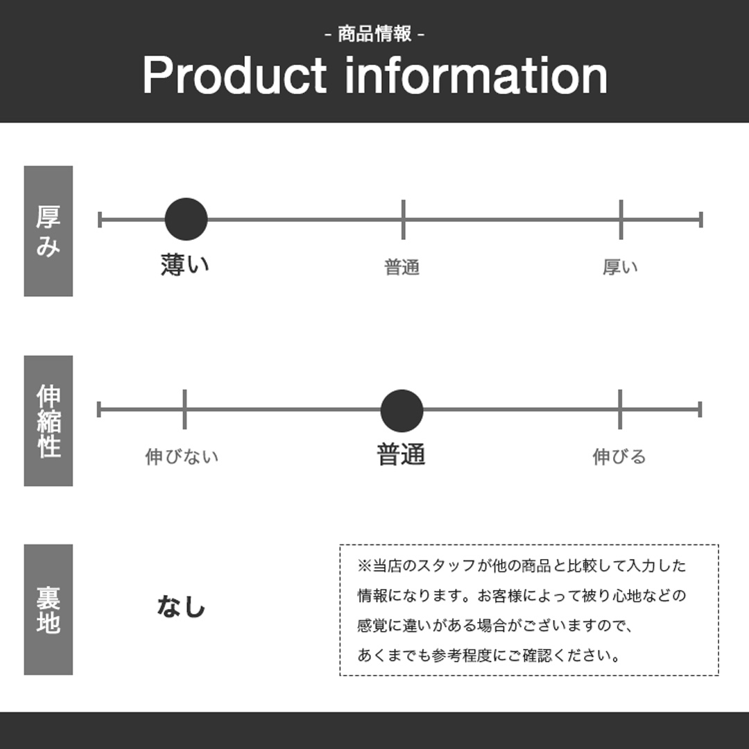 ※ニット製品の特性上、サイズや形状に若干の個体差が生じる場合がございますが、伸縮性に優れているため、着用には支障ございません。あらかじめご了承ください。